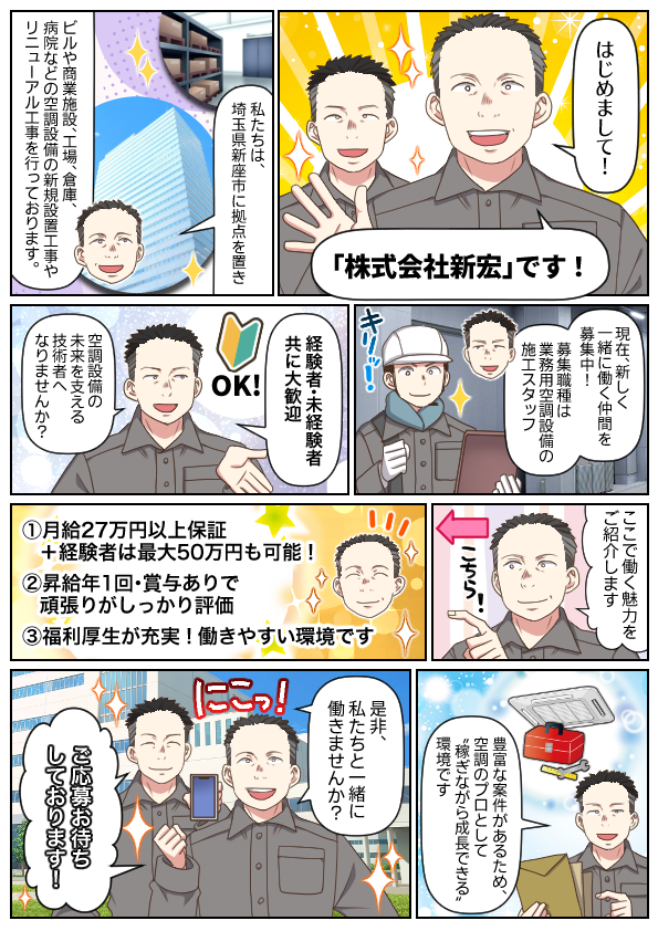 - 業務用空調設備の施工スタッフ(経験者優遇)